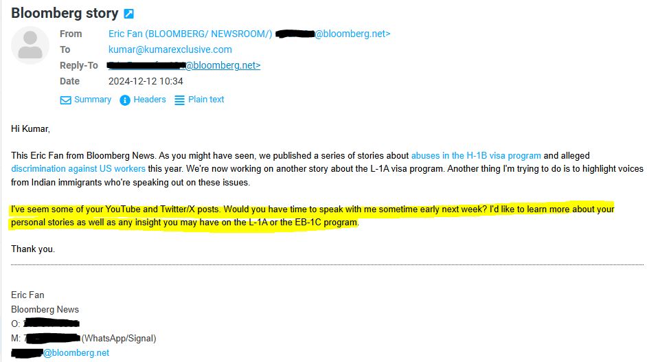 @business approached me earlier to take inputs before publishing their article on EB-1C (Cognizant) scams, and now another top U.S. media outlet 🇺🇸📰 has reached out for my insights on EB-1A visa misuse — Kumar Exclusive ✍️🧠🔥