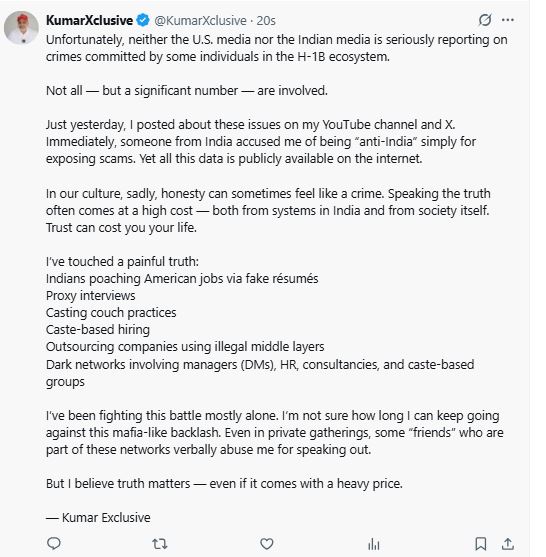 Truth is not hate — it’s awareness. #USCIS #NIW #EB1A #VisaFraud #ImmigrationIntegrity #KumarExclusive
