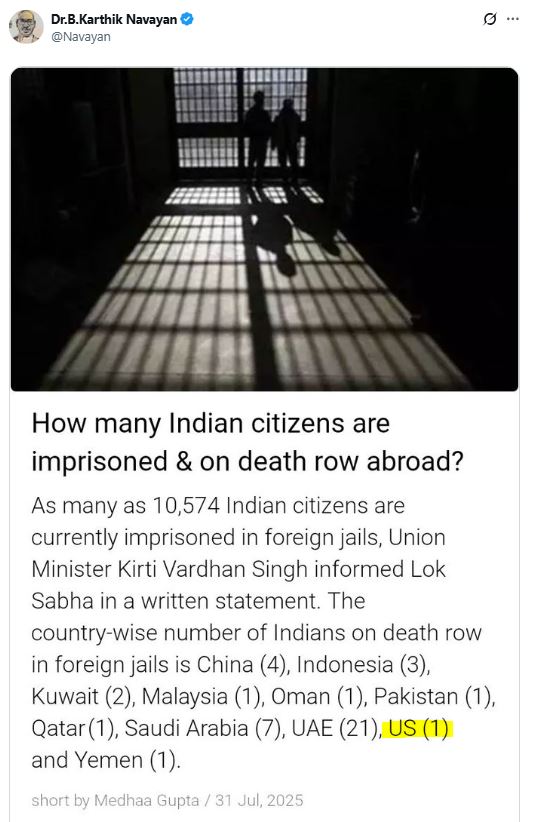 8️⃣His execution was scheduled for Feb 2018, but a moratorium on the death penalty in Pennsylvania put it on hold. As of August 2025, he remains the only Indian citizen on U.S. death row, held at SCI Somerset Prison.