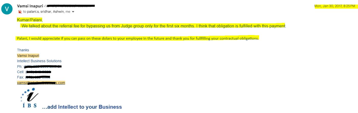 Remember we agreed on that $10/hr kickback from Judge Group for bypassing us?