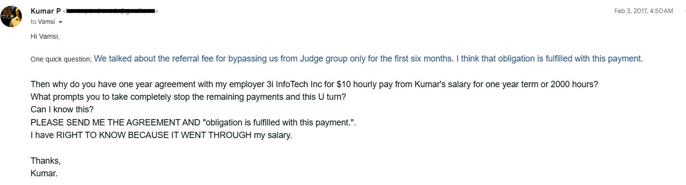 Then why the hell is there a 1-year agreement with 3i Infotech to keep cutting my pay at $10/hr for 2000 hours?